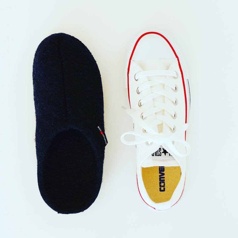 同じサイズの HAFLINGER(ハフリンガー)とコンバースを比べてみました。 HAFLINGERのつま先にはゆとりがあるので 厚手の靴下でもゆったり快適! 素材もウール100%なので 歩くた…